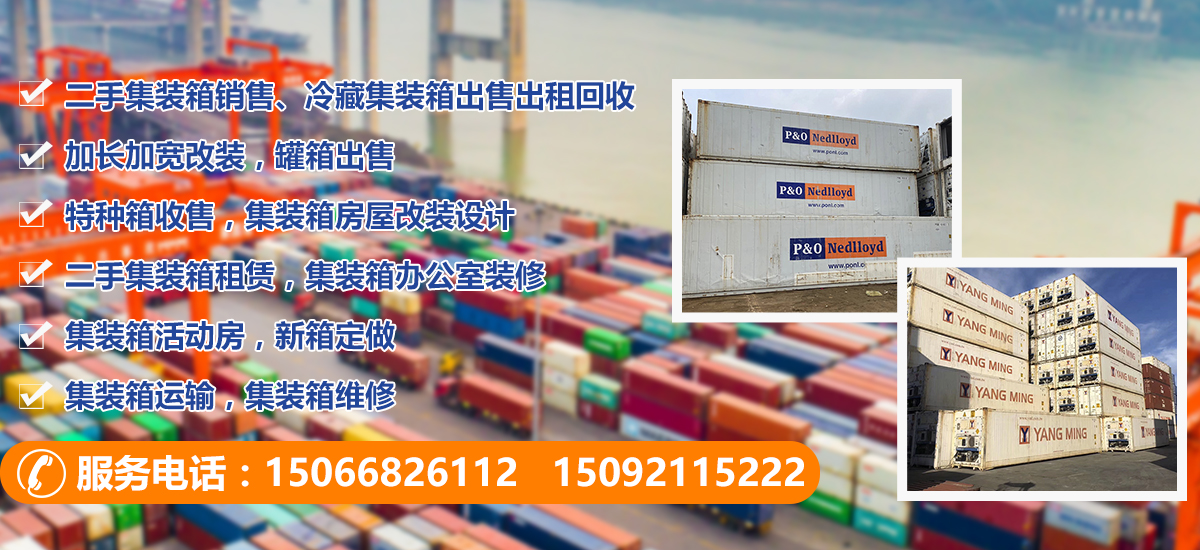 主營;二手集裝箱銷售、冷藏集裝箱出售出租回收、加長加寬改裝,罐箱出售,特種箱收售,集裝箱房屋改裝設(shè)計(jì),二手集裝箱租賃,集裝箱辦公室裝修,集裝箱活動(dòng)房,新箱定做,集裝箱運(yùn)輸,集裝箱維修等業(yè)務(wù)